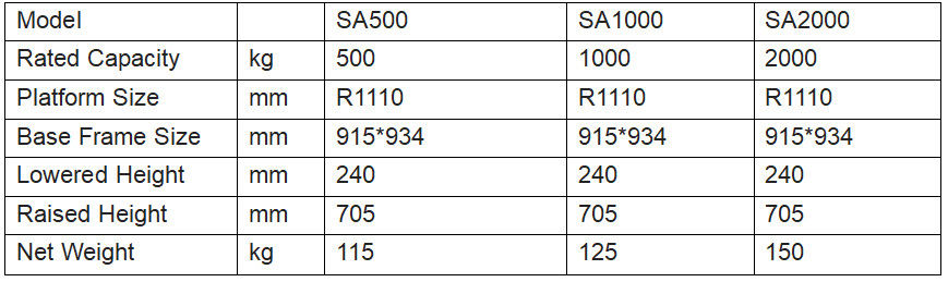 | Rated Capacity: | 2000kg | Platform Size: | R1110mm |