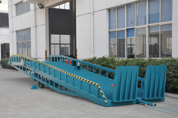 Mobile Dock Ramp is an auxiliary machine for loading and unloading cargos with forklift coordination use. The forklift can drive from the ground to the truck compartment to work directly through the Mobile Dock Ramp. There is no need to connect to power supply, for it uses manual hydraulic power. Only one man needed to manipulate the machine to load and unload goods safely and fast. With it, you can save abundant labor-using, increase the efficiency of loading and unloading, and speed up the flow of goods, then get more economic benefits.