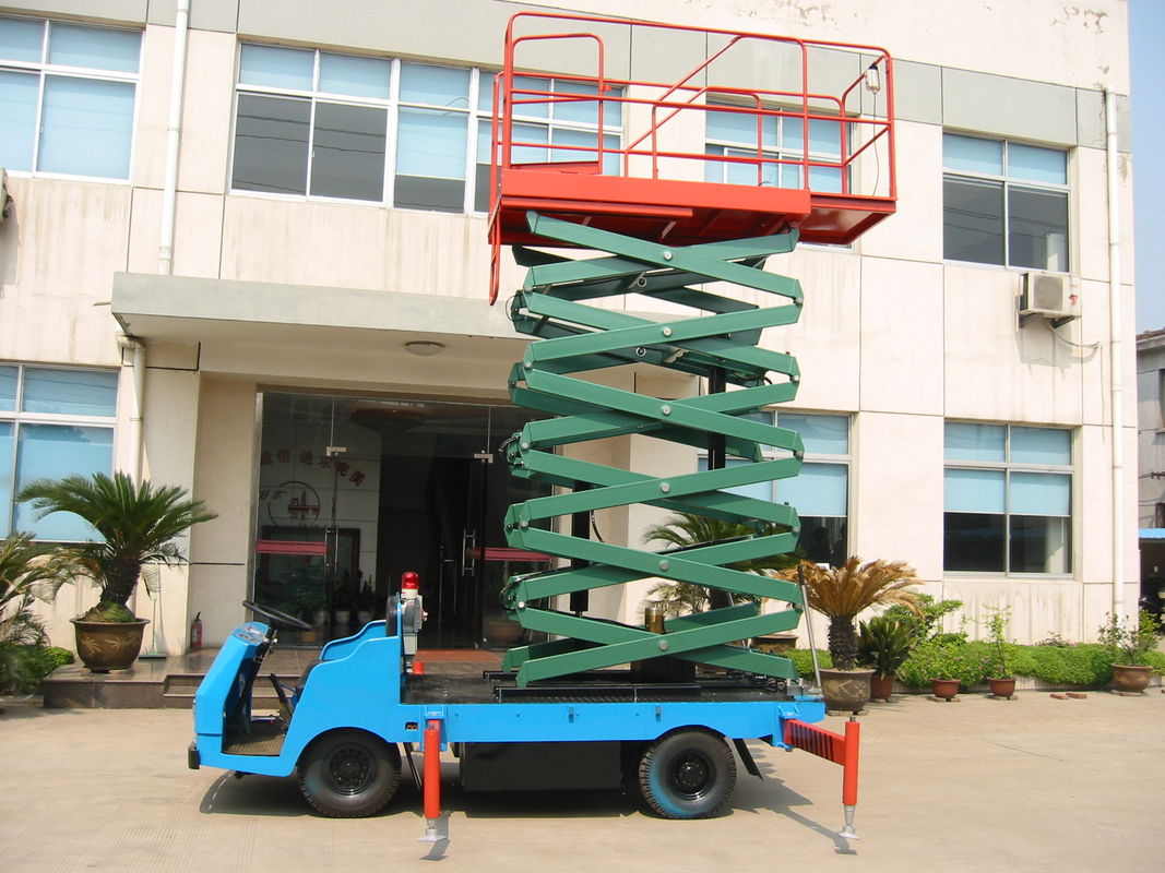 Truck-mounted Scissor Lifts are aerial working platform which combine with an automobile, the lifts are driven by DC or the engines of the vehicle The lifting platform is movable everywhere due to the vehicle can be driven as wishes. It is suitable for the aerial working for long distance and the frequently changing places.