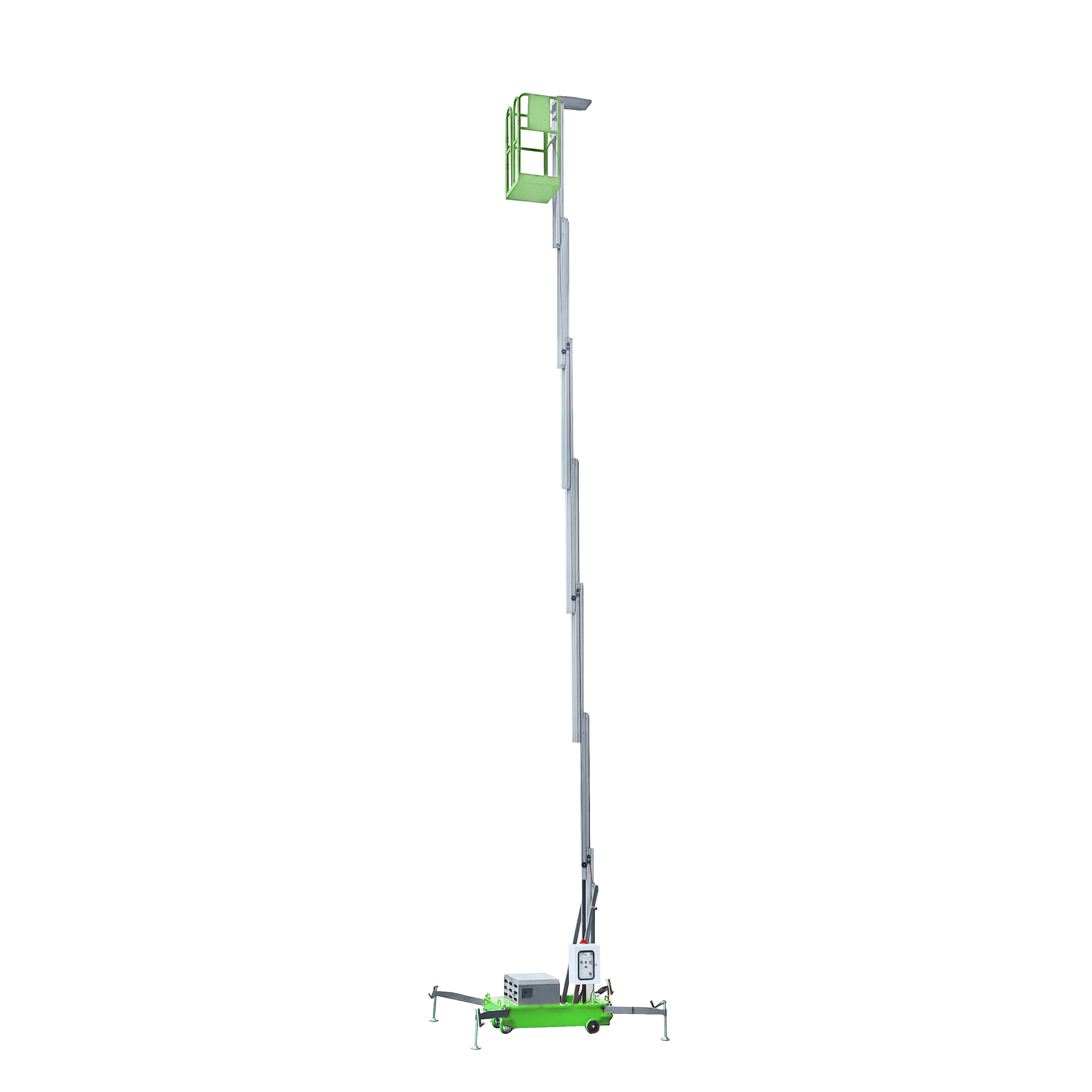 The lifting height ranges from 4m to 22m for different mast Aluminum Aerial Work Platform and the loading capacity varies from 130Kg to 300Kg.