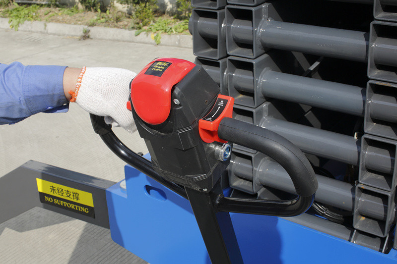 This upgrade mobile scissor lift has stable structure and the orbit of the machine is very small which gaurantee the safety of the machine. The pulling device can save operator's force a lot, and only the machine is closed totally the pulling device can work.